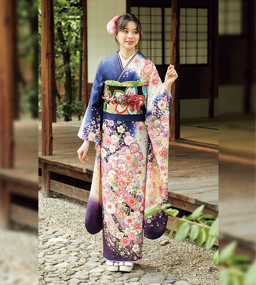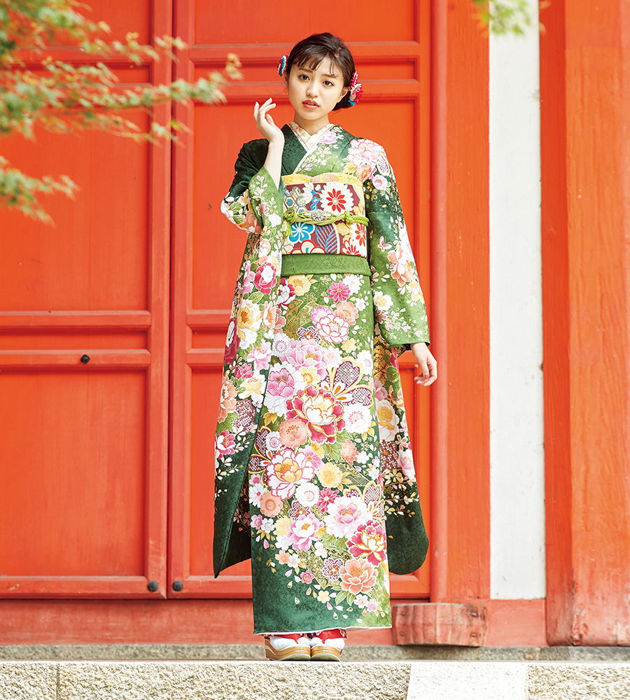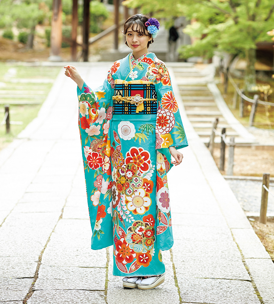 写真のコーディネート(帯・帯締め・帯揚げ・重ね衿・半衿・草履・バッグ・ショール等の小物類)は、撮影用です。