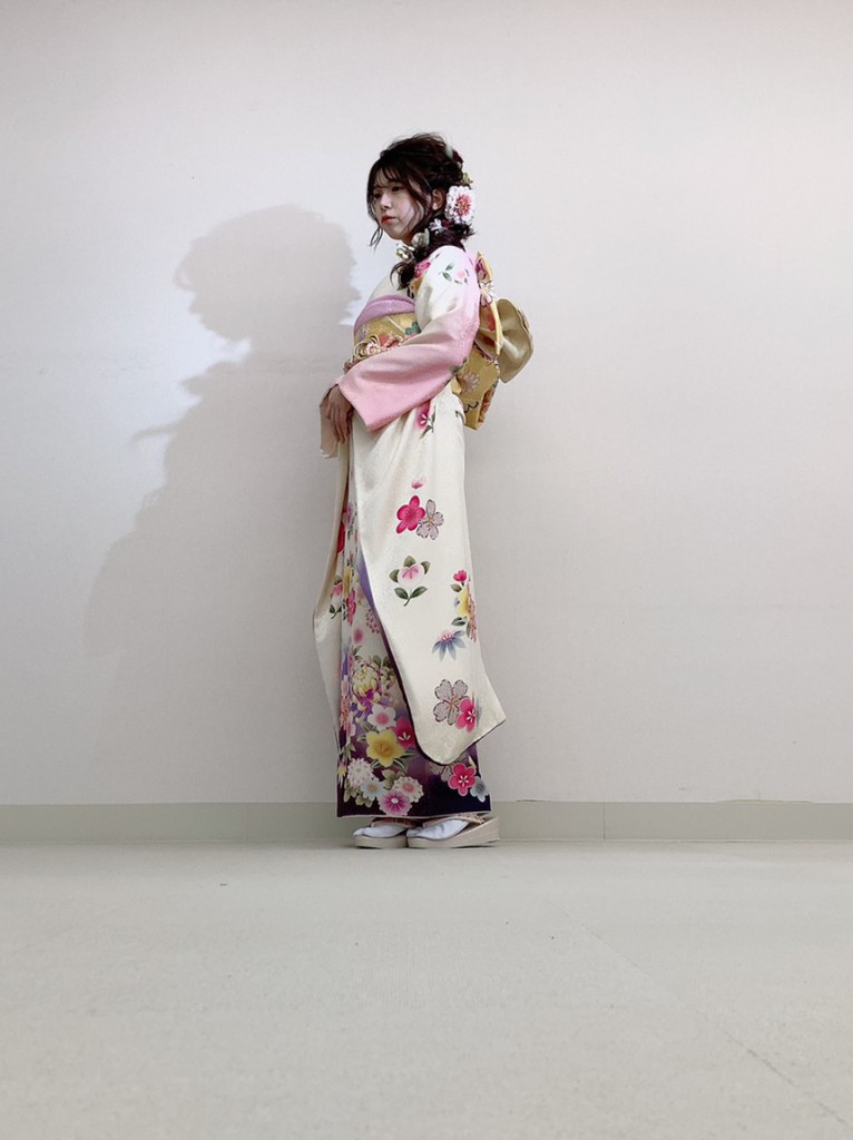 可愛らしくてやさしい印象の明日香ちゃんには3点の振袖でコーディネートチェンジ。